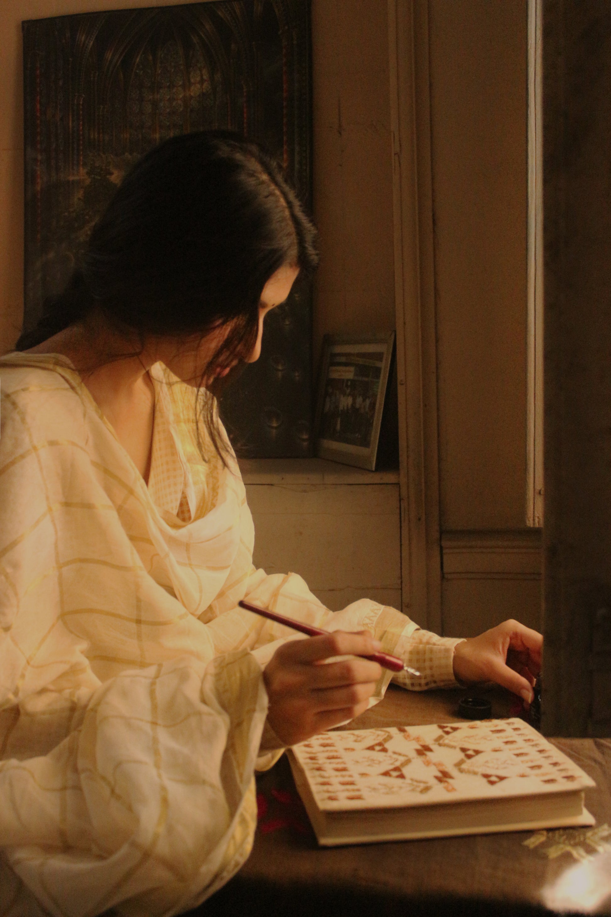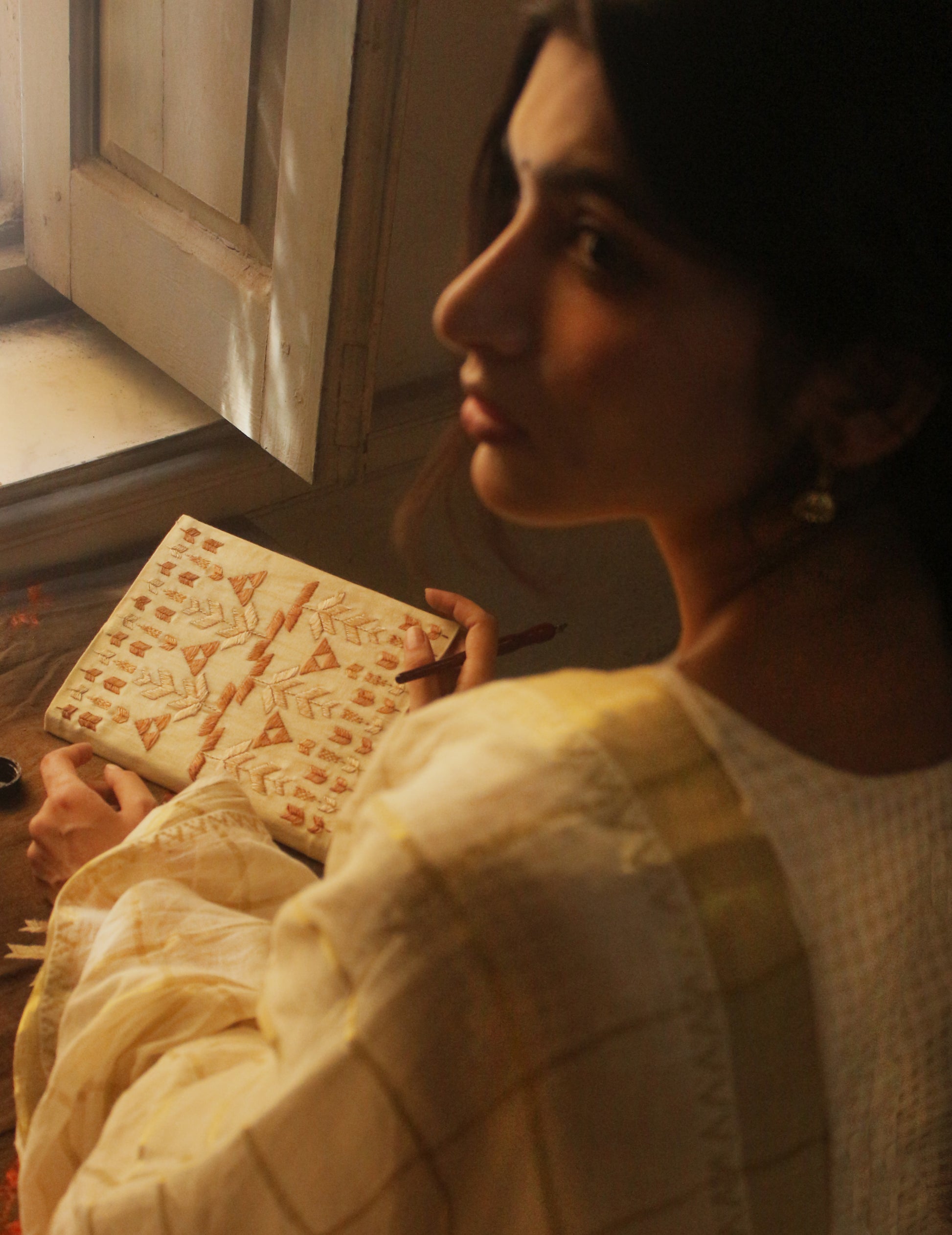 A Tussar silk book cover with beautiful phulkari embroidery is a perfect sustainable handmade product to write your thoughts on.